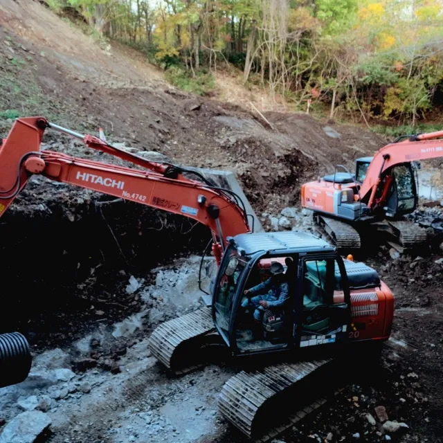 道路・河川・上下水道、防災関連工事など、公共インフラを中心とした社会基盤整備を担当。人々の生活を支える重要な役割を担い、災害に強いまちづくりに貢献します。豊富な経験と確実な技術で、協力会社との連携を図りながら安全で質の高い施工を実現します。